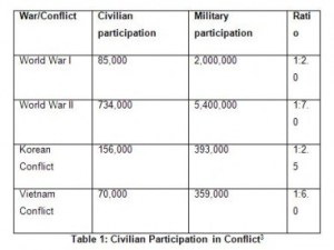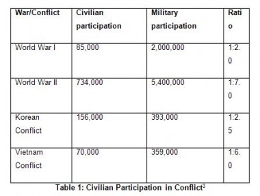 Looking at history books, one can observe that PMCs are not a new entity in the field of security and warfare. They have been a part of the combat environment since history. The practice of deploying mercenaries (2) dates back to the 13th century B.C when they were employed by Greeks, Roman, Egypt, Rameses II etc. and the trend continues to be a part of the contemporary times. Interestingly, PMCs can be viewed as an ‘advancement of the mercenary culture’. Consequently, civilian participation and PMCs are not a new entity in the combat environment. The numbers in Table 1 clearly indicate the tendency of state to rely on PMCs and how that has augmented over a period of time.