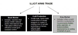 The structure of the small arms black market today is a complex network stretching across the globe, siphoning the gains of globalisation. At heart, it’s essential to map out the structure of illicit arms trade which not only includes black market, but also grey market and craft production.